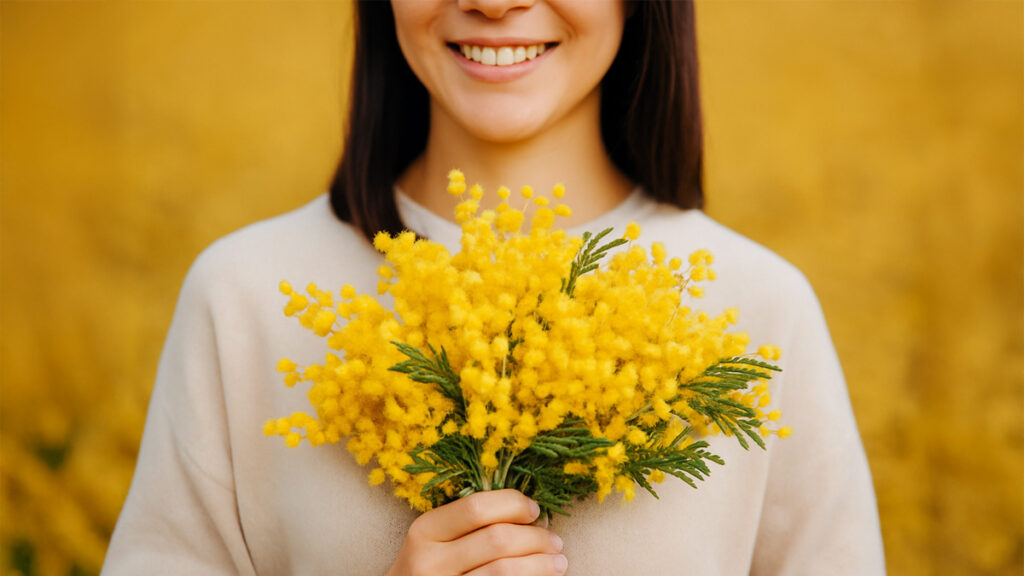 特にイタリアでは、男性が女性へ「感謝」の気持ちを込めてミモザを贈る習慣があり、国際女性デーは「ミモザの日」とも呼ばれています。
